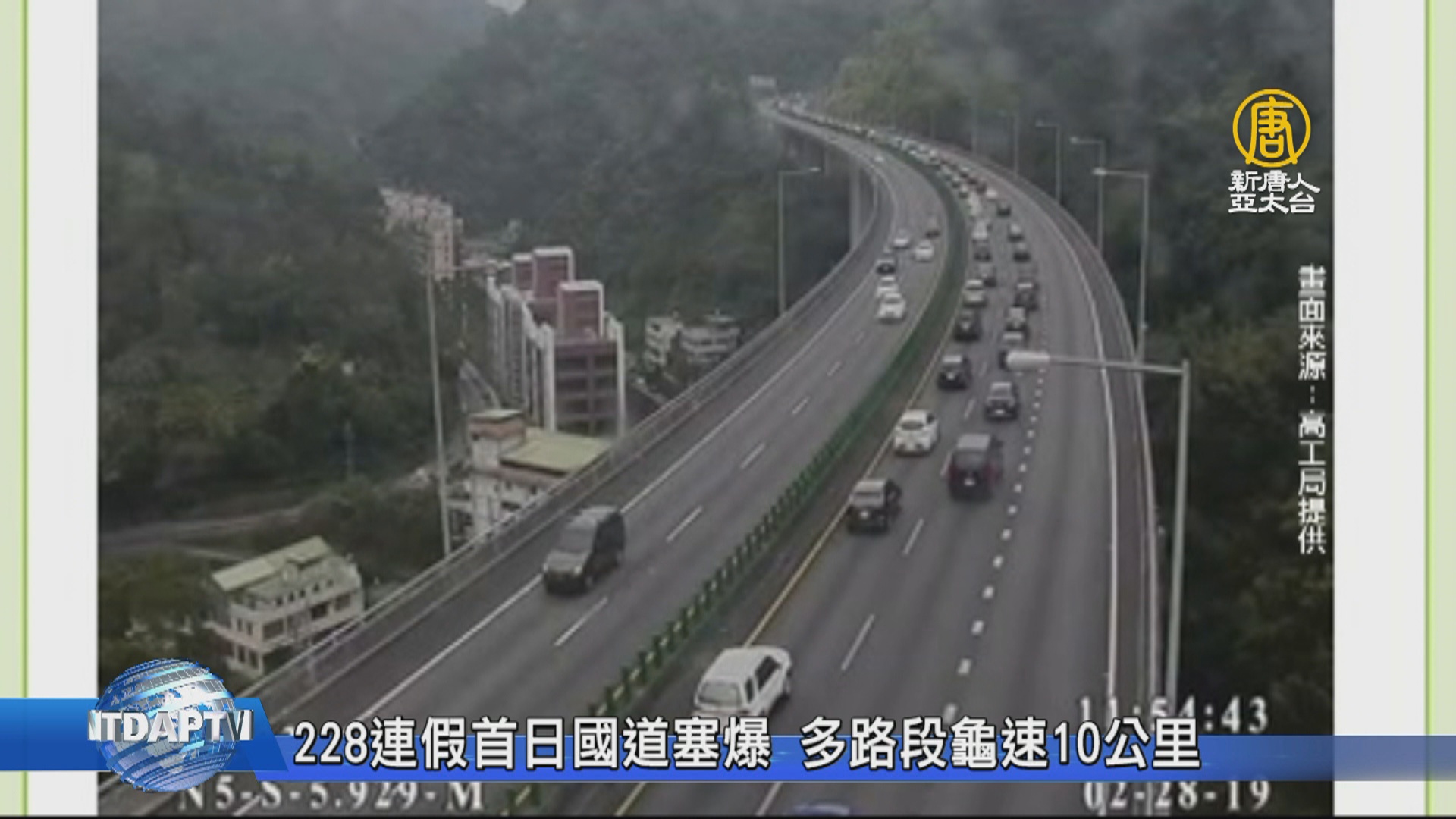 【新唐人亞太台 2019 年 02 月 28 日訊】228連假首日湧現大量出遊車潮,其中鄰近風景區和樂園的國3,北中南段都出現壅塞,多處路段出現10多公里龜速前進。即便實施高乘載管制的國5,南下出遊車潮,也一路從南港系統塞到頭城。