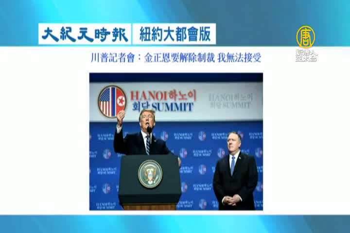 【新唐人亞太台 2019 年 03 月 01 日訊】接著看到大紀元時報紐約大都會版報導:川普記者會,金正恩要解除制裁,我無法接受。
