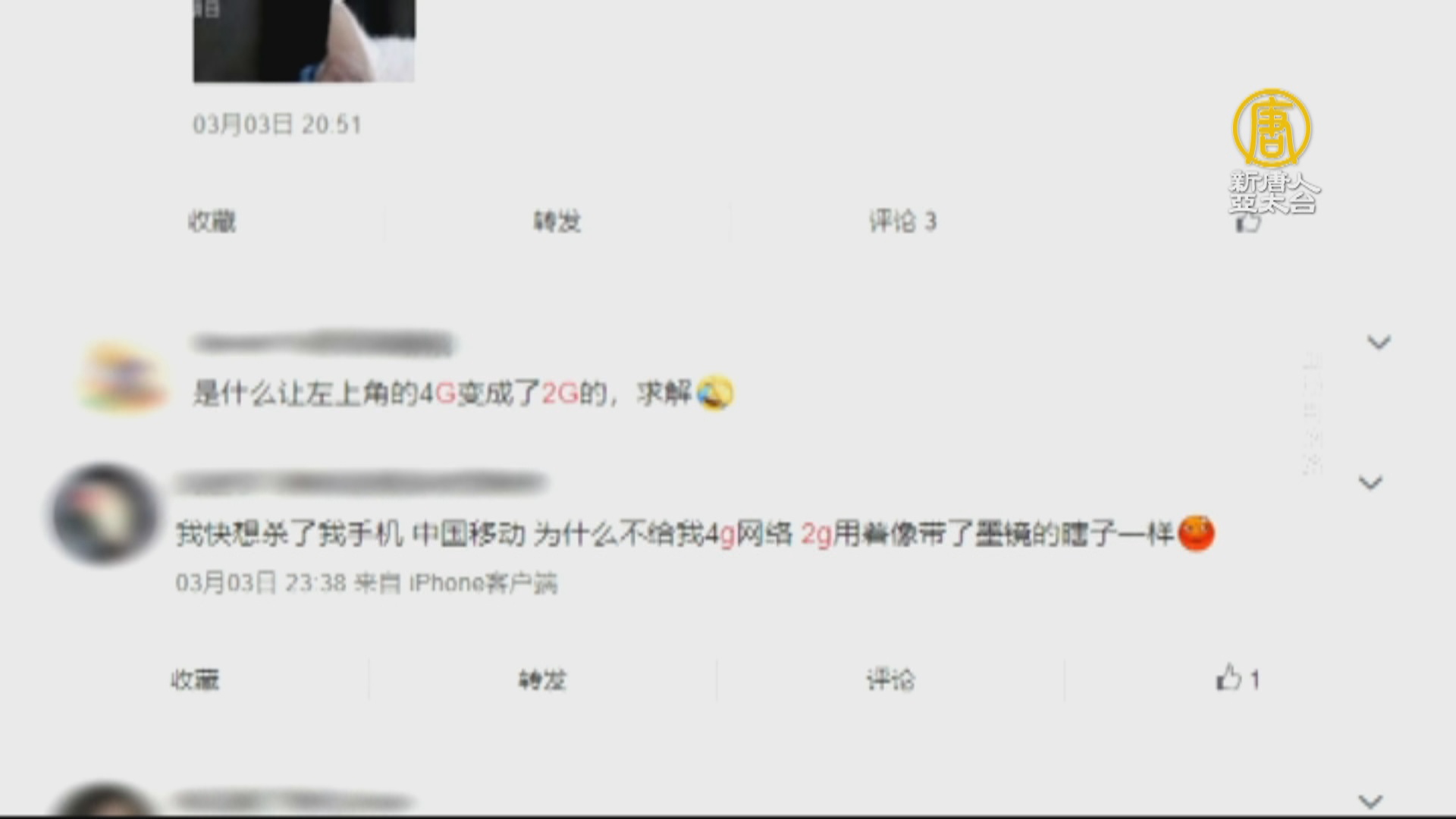 【新唐人亞太台 2019 年 03 月 04 日訊】再來看到,中共在3月3日和5日分別召開政協與人大會議,俗稱兩會,中國經濟持續放緩,將成為一大焦點,中共政協主席汪洋,向2000多名政協委員說,中共面臨著嚴峻的「各類風險、挑戰」。而當局也啟動史上最嚴維穩,連電信服務信號也明顯變差,被懷疑有屏蔽管制。3日晚上,多地網友發貼稱,手機網絡由4G變為2G和無信號,引起民怨。