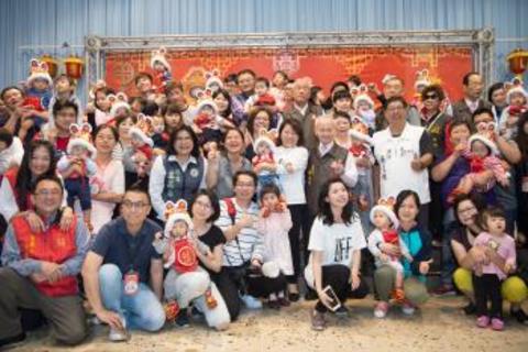 在25組報名抓周的親子中,蔡志國夫婦是102年參加集團結婚、由黃敏惠見證的新人,他們昨天也帶雙胞胎寶寶來參加活動,場面相當溫馨。