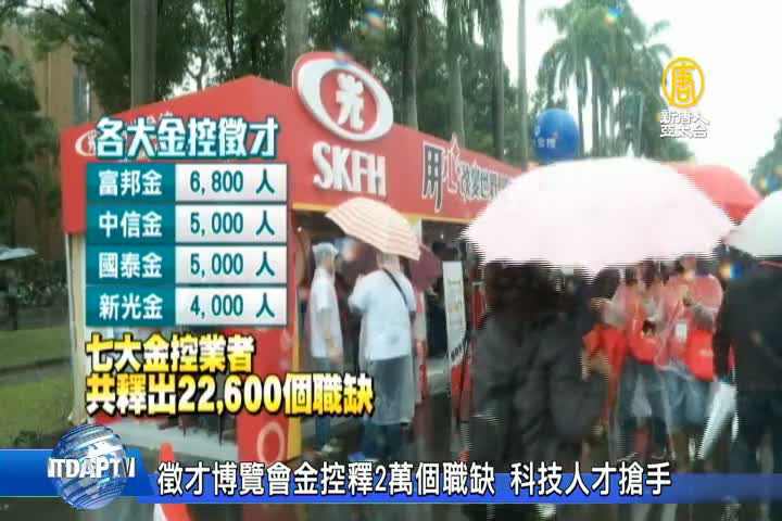 【新唐人亞太台 2019 年 03 月 09 日訊】台大校園徵才博覽會周六(9日)登場,多家大型民營金控都開設攤位,金控總經理還親自出馬,7家大型金控共釋出2萬多個職缺。隨著數位金融發展,人才需求也出現明顯轉變,從過去的財金專科,逐漸轉向資管、數位和科技等相關專業人員。