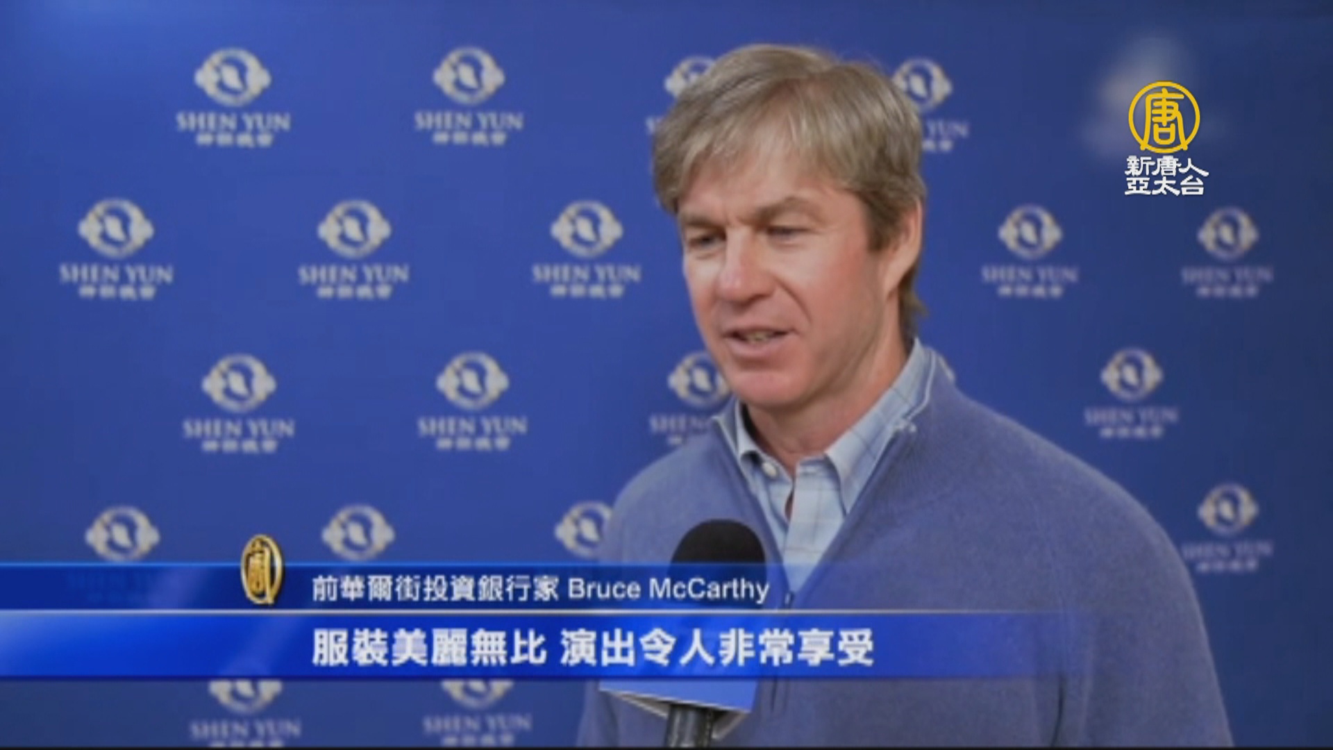 前華爾街投資銀行家 Bruce McCarthy:「神韻非常傑出,編舞和天幕演員之間的協調轉換精妙絕倫。服裝美麗無比,演出令人非常享受。喜愛神韻舞蹈,讓我感覺非常祥和,展現的中華文化真是趣味盎然。音樂是演出的重要組成部分,像所有其他部分一樣傑出,水準非常高。」