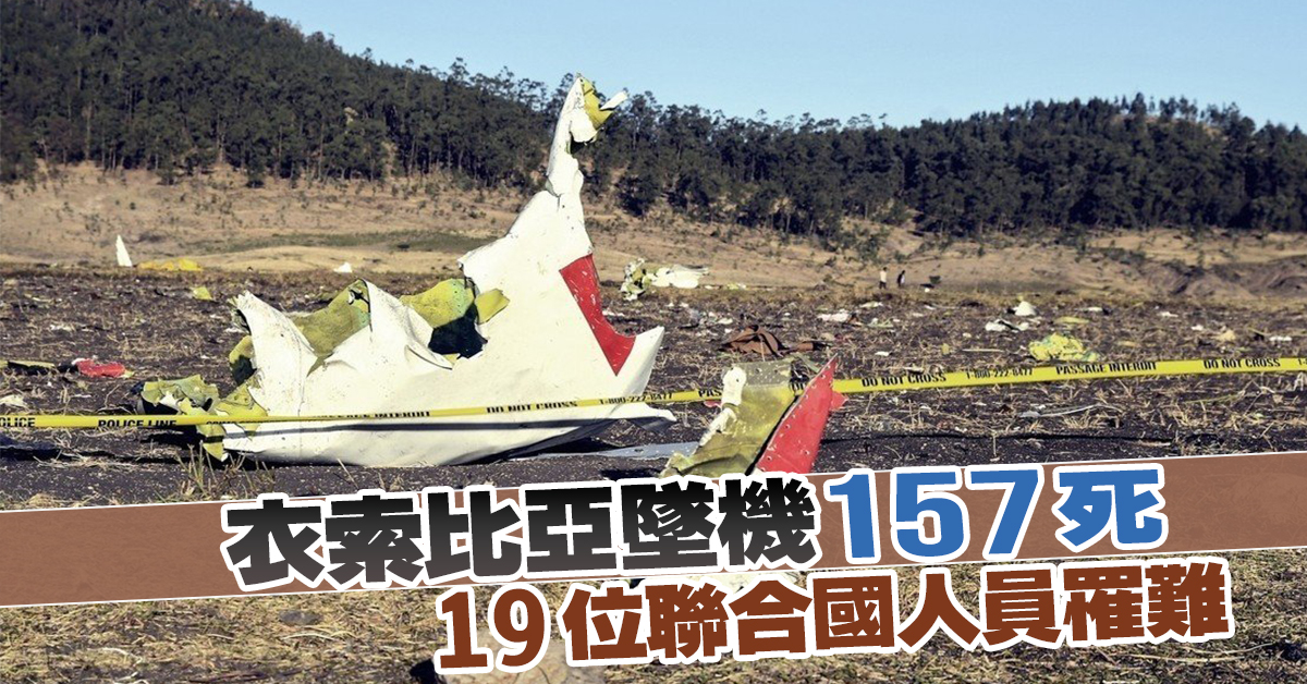 衣索比亞航空公司發言人稱,失事航班在首都阿迪斯阿貝巴東南62公里處附近墜毀,確認這架飛機是波音737-800 MAX。機上載有149名乘客和8名機組人員,已經全部遇難,遇難者來自30多個國家。有報導稱,該航班搭載有8名中國乘客。班機上還有高密度的聯合國人員,根據聯合國聲明,機上至少有19人是聯合國人員。