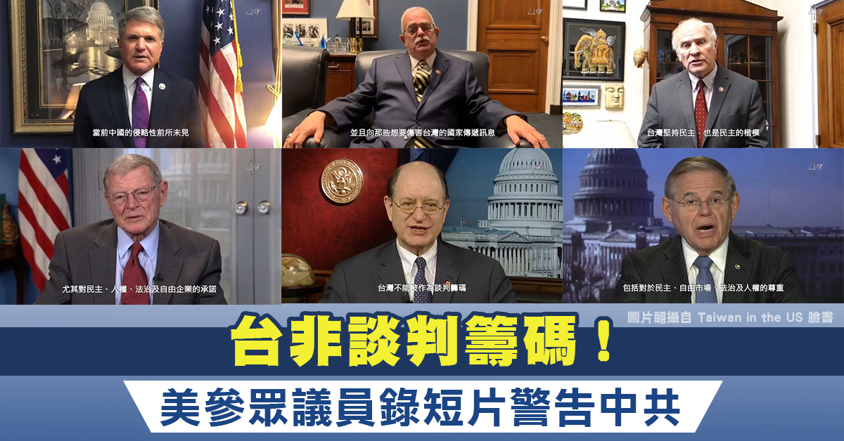 台非談判籌碼! 美參眾議員錄短片警告中共