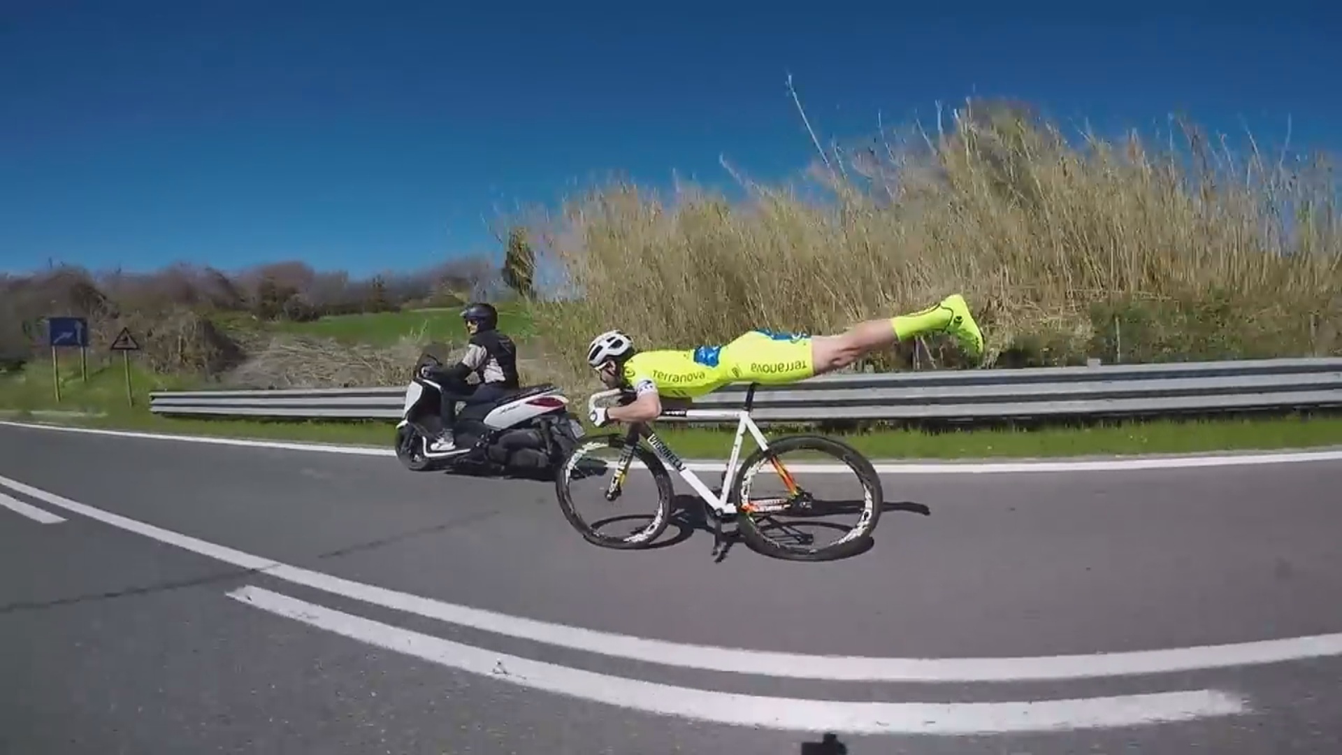 【新唐人亞太台 2019 年 03 月 11 日訊】網上一段視頻顯示,義大利自行車選手格拉(Michael Guerra)在公路競速時,以超人的姿勢騎乘,不但追過其他5名選手,還將前導的摩托車拋在腦後,讓人看了直呼,太厲害了。