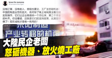 大陸民企老闆怒砸機器、放火燒工廠
