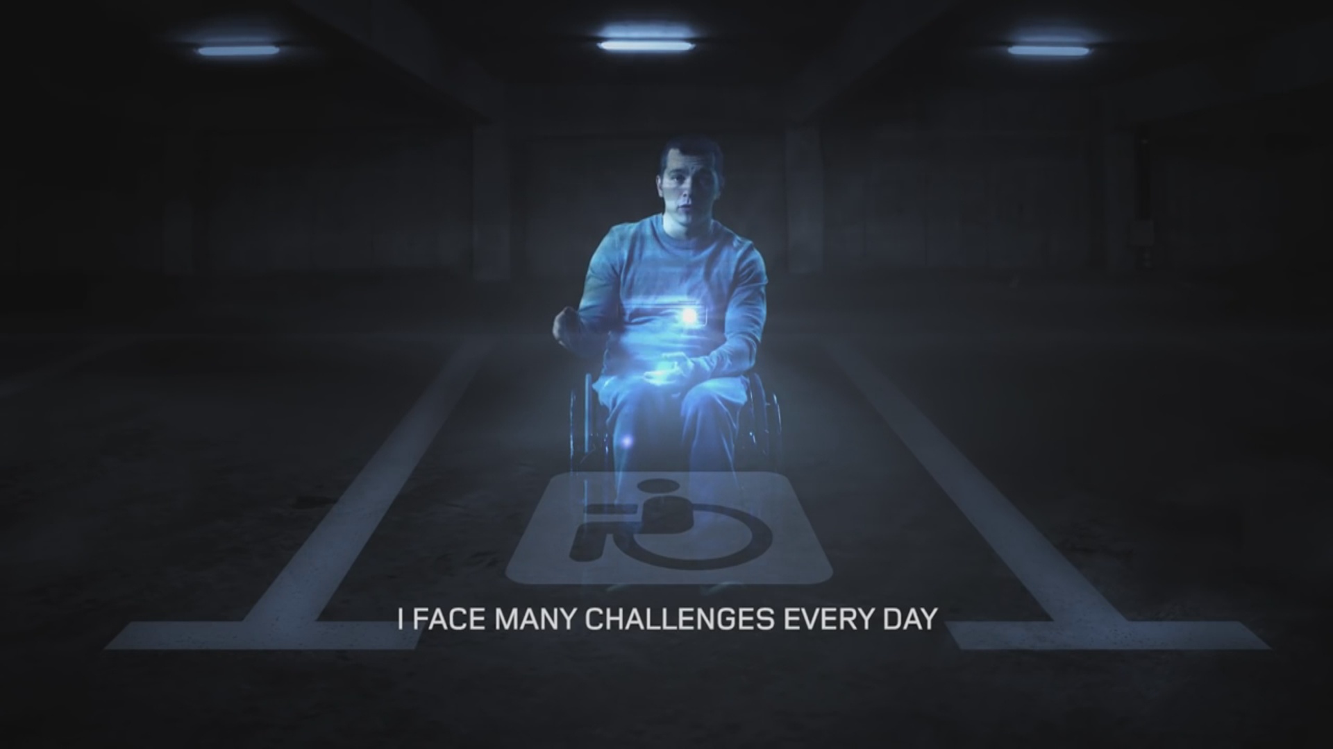如果來車沒有貼身障者的標誌,而且還企圖要停進身障者專用停車格的話,就會觸動3D全像投影,將預錄的影片顯現出來,真人影像就像是憑空出現在水霧形成的背景上,還加上聲音,勸告駕駛另找車位。