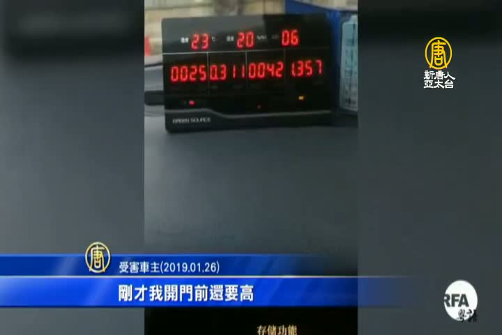 受害車主(2019.01.26):「車發動了20多分鐘,大家請看,甲醛超標3倍多,0.311,剛才我開門前還要高,這是開了4年的車,甲醛,還在超標,揮發物達到1.357。」