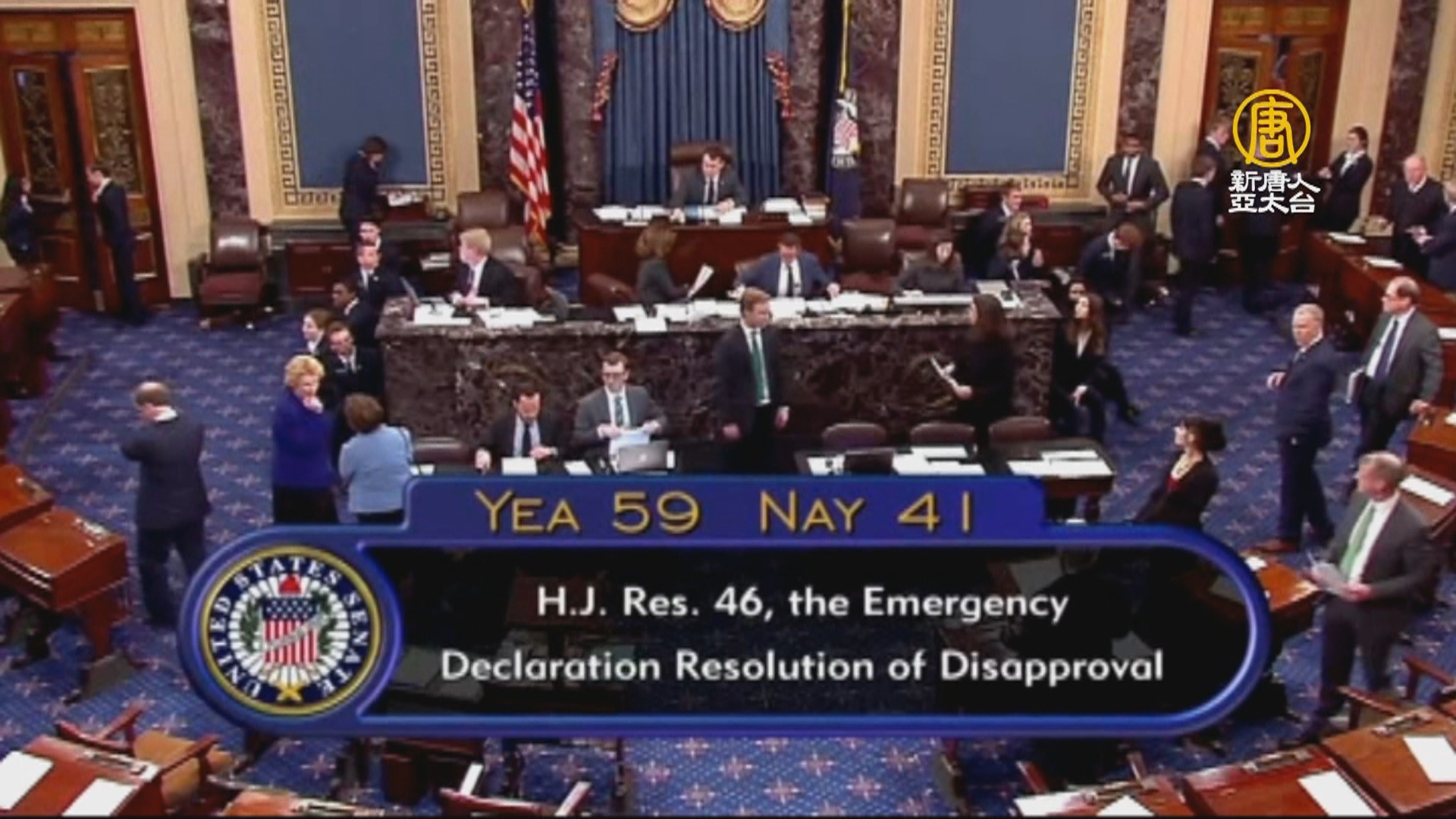 共和黨佔多數的美國聯邦參議院,最終以59:41投票試圖封殺總統不久前宣布邊境進入國家緊急狀態的行政令,12名共和黨參議員加入民主黨一邊、投票反對總統。