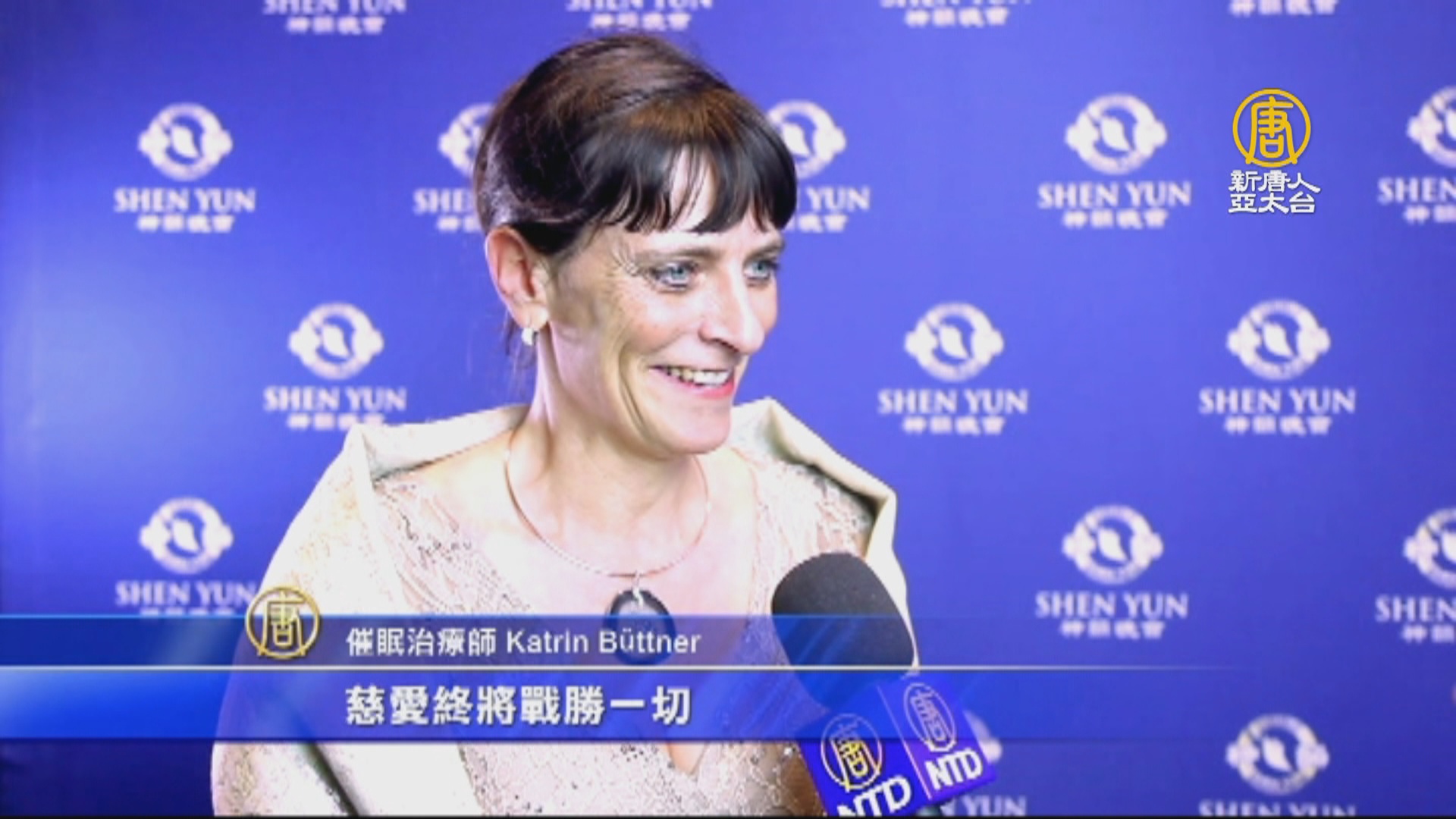 催眠治療師 Katrin Buttner:「演出傳遞給我們的訊息是,變化就在眼前,世界上慈愛的力量最強大,慈愛終將戰勝一切。人們要敞開心扉,回歸到慈愛中,讓心中充滿慈愛,每個人要為此努力並去實踐。」