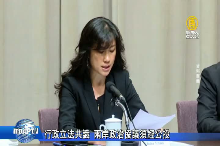【新唐人亞太台 2019 年 03 月 25 日訊】好,就擔心有政治人物,擅自跨足兩岸深水區,行政院今舉行行政立法協調會,針對攸關兩岸簽訂政治協議的修法進行討論攸關兩岸簽訂協議的公投機制,預計週四行政院會通過後,本會期優先處理。行政院發言人於會後轉述表示,行政立法對修法達成共識,未來兩岸若簽署政治協議,須經國會雙重審查,並且經全國性公投通過後才能上路。並坦言,修法若三讀通過,未來兩岸簽署政治協議的門檻將比現行修憲門檻更嚴格。