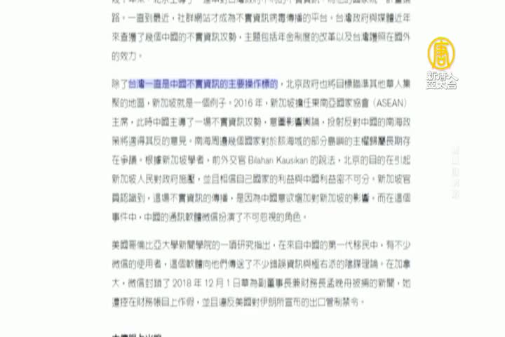 【新唐人亞太台 2019 年 03 月 26 日訊】無國界記者組織今天發布「中國追求的世界傳媒新秩序」報告,報告指出,北京對海外媒體展開新木馬屠城計劃,其中台灣一直是中共不實資訊主要操作目標,裡面提及假新聞造成外交官之死,更直接點名,某媒體集團,遭親中資金買下後,「採取黨的路線」,對中共不再有以往的批判聲調。報告還說,美國中文資訊市場中,真正的獨立媒體很少,像大紀元時報與新唐人電視台的獨立媒體,寥寥無幾。