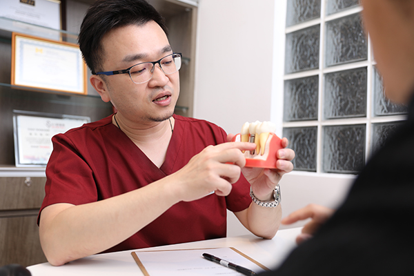 阮柏升表示,通常缺1顆牙時可選擇磨小前後牙齒做3顆支撐的牙橋,或以缺1顆牙植入1顆植牙,兩種方式。(圖/阮柏升醫師提供)(健康傳媒)