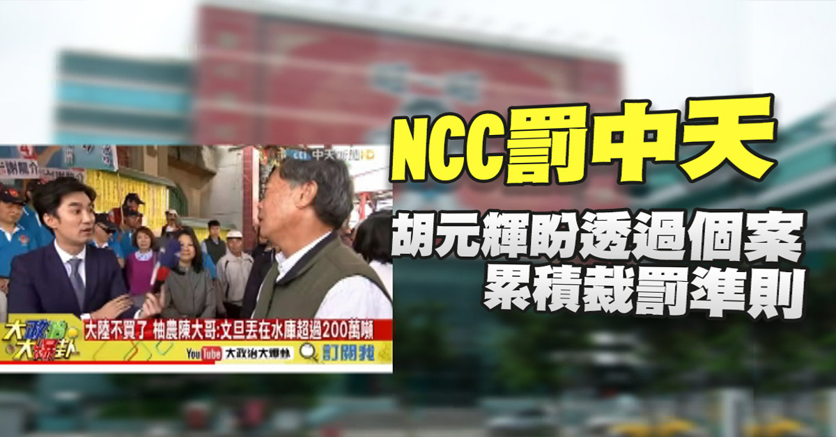 NCC罰中天 胡元輝盼透過個案累積裁罰準則