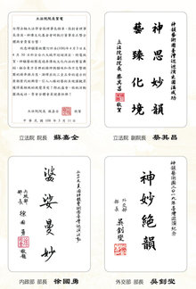 此外,包括內政部長徐國勇、財政部長蘇建榮、經濟部長沈榮津、行政院僑務委員會委員長吳新興、客家委員會主任委員李永得、公平交易委員會主任委員黃美瑛、主計總處主計長朱澤民、中央銀行副總裁陳南光與國立故宮博物院院長吳密察等中央部會及機關首長,也都發詞迎接神韻再度蒞臨。
