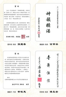 此外,雲林縣議會議長沈宗隆、花蓮縣議會議長張峻、台中市議會副議長顏莉敏及大甲鎮瀾宮董事長顏清標等地方政要,也都相繼發出賀詞,讚賀神韻再次蒞臨演出。