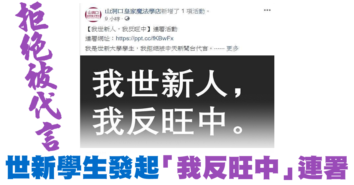 【新唐人亞太台 2019 年 03 月 30 日訊】世新學生發起「我反旺中」連署 拒絕被代言