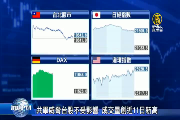 【新唐人亞太台 2019 年 04 月 01 日訊】再來關心,中共軍機殲11,今天越過台灣海峽中線,緊張情勢一度升溫,不過,並沒有影響衝擊到今天的台北股市。來看到,台股今天在鴻海領軍下,同步上攻,泛鴻海集團是全面發動,成為今天台股主要的支撐力道。終場收在 10642.63 點,成交量 1530.57 億元,創近 11 個交易日新高。