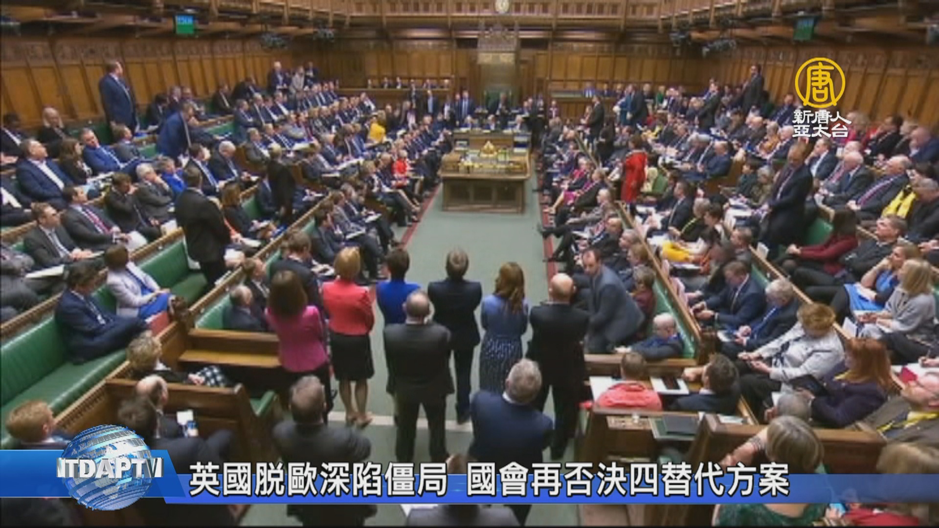 【新唐人亞太台 2019 年 04 月 02 日訊】接著來關心,英國脫歐的最新進展。週一,英國國會對包括關稅同盟、二次公投等四個選項,進行第二次指示性投票。不料國會再次否決全部的選項。在國會深陷僵局的同時,英國民間已經有超過600萬人連署,要求撤回英國脫歐。
