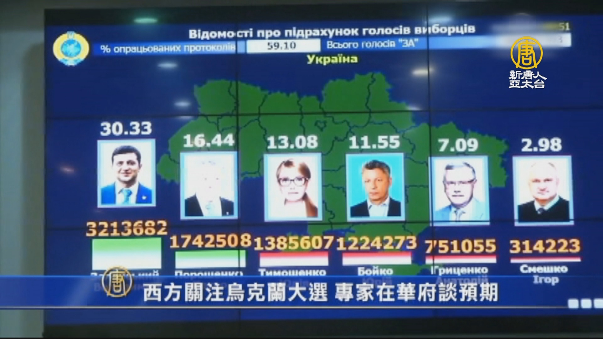 【新唐人亞太台 2019 年 04 月 03 日訊】烏克蘭31日總統大選﹐喜劇演員澤倫斯基以30.5%得票率﹐領先於現任總統波洛申科的16.6%。兩人將在4月21日的第二輪複選中﹐一爭高下。華府專家對首輪選舉給予積極評價。