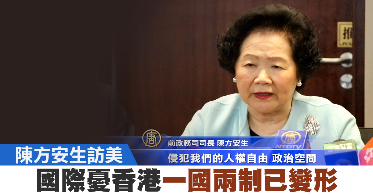 【新唐人亞太台 2019 年 04 月 03 日訊】鏡頭轉到香港,香港前政務司司長陳方安生日前訪美,陳方安生表示,美方極度關注香港一國兩制的實施,特別是《逃犯條例》的修訂,憂慮一國兩制,已經變形。