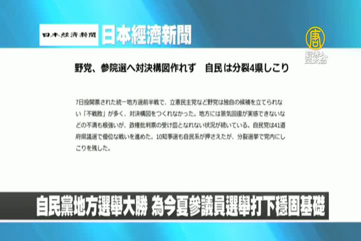 【新唐人亞太台 2019 年 04 月 08 日訊】來看到日本經濟新聞報導:日本執政黨自民黨在地方選舉大勝,為今年夏天的參議員選舉打下穩固基礎。