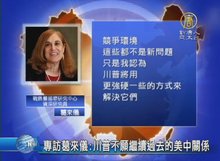 2017-01-04 20:29:33川普當選美國總統後,外交政策將與歐巴馬政府有何不同?新唐人專訪 「國際戰略研究中心」CSIS 資深研究員葛來儀,她認為,可以確定的是,川普不願繼續過去的美中關係,但如果就此判定他想聯俄制中,可能是過度解讀了川普的即興評論。