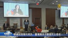 2019-04-10 12:51:22臺灣關係法40周年前一天,週二(9日),中華民國總統蔡英文,透過視訊跟美國華府三大智庫學者對話。她表示,台灣關係法,奠定台灣成為世界民主燈塔的基礎。她也坦言,中共以各種手段分化台灣、軍事挑釁,台灣的民主自由面臨前所有未有挑戰,希望美國更清楚向世界傳達,中共對台灣的擴張,也威脅自由世界。本台華府記者的報導。