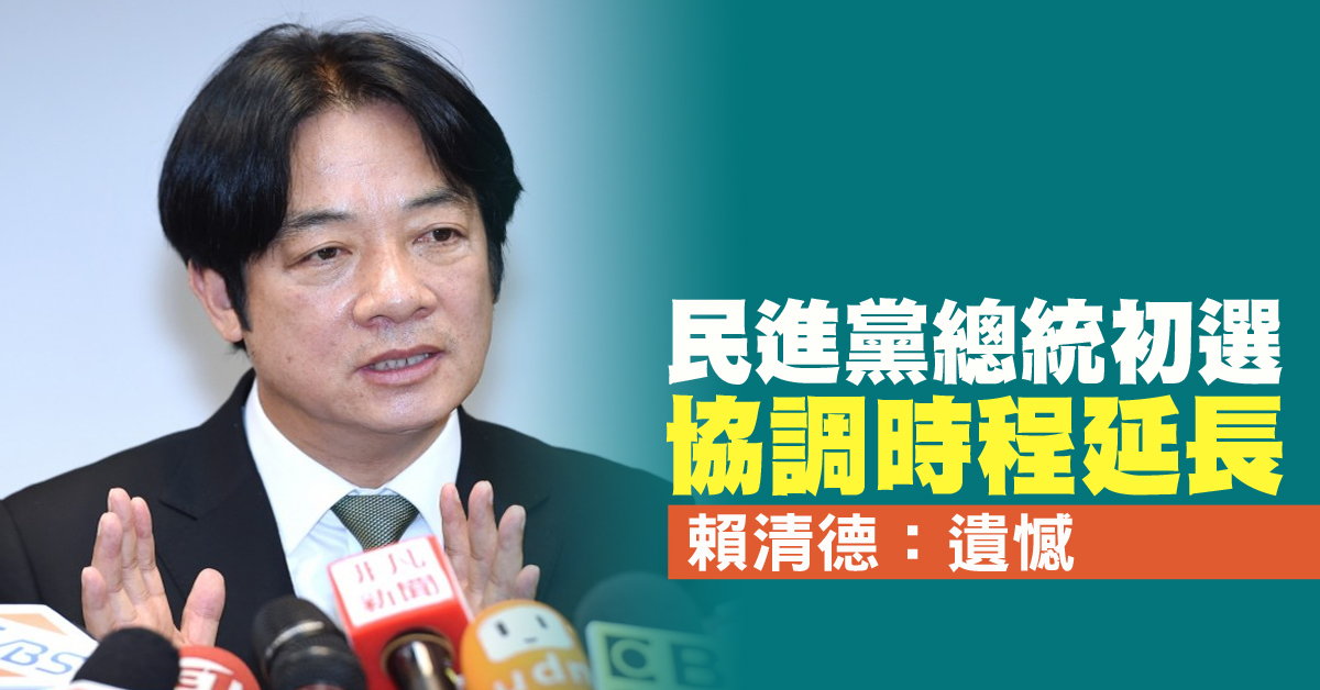 民進黨總統初選協調時程延長 賴清德:遺憾