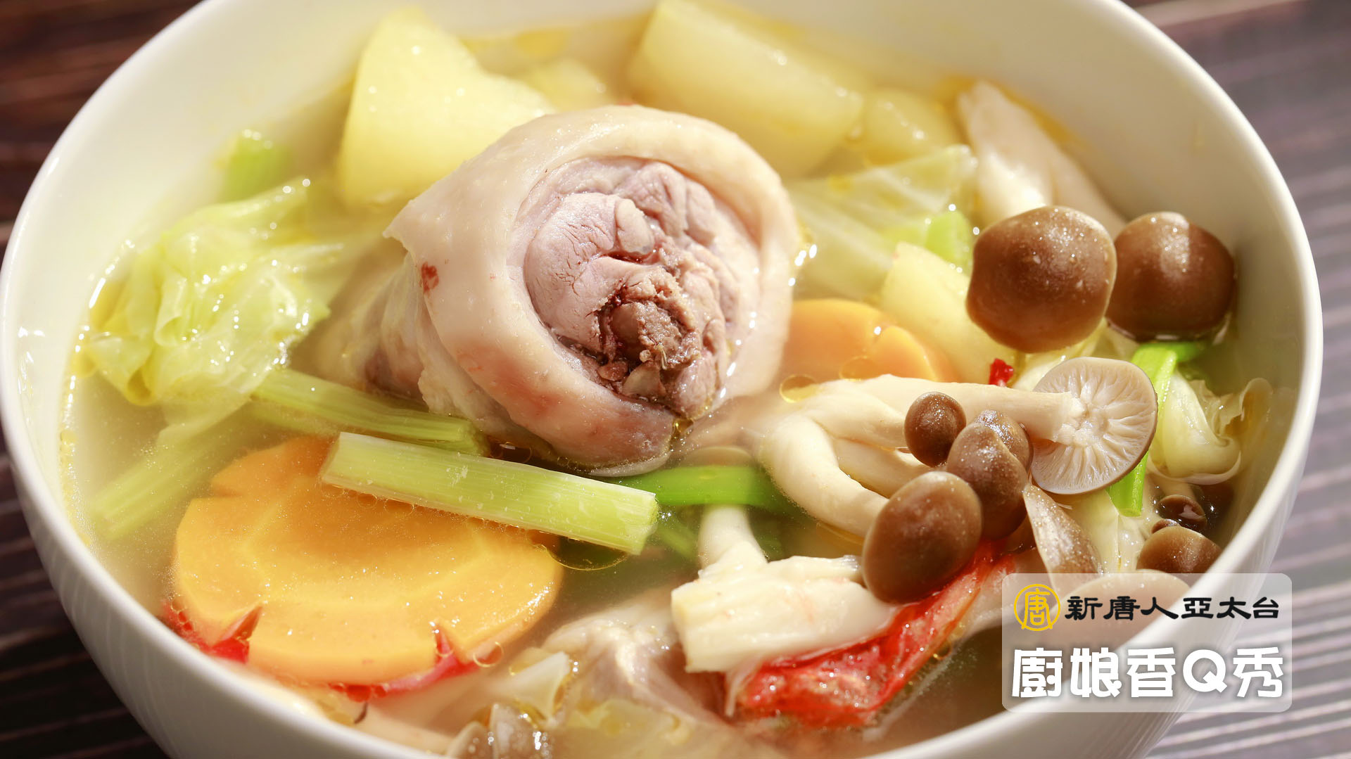 雞腿100公克、高麗菜140公克、蘋果150公克、馬鈴薯220公克、紅蘿蔔60公克、牛番茄90公克、青蔥1根、芹菜10公克、鴻喜菇55公克、水1500cc、鹽1/2小匙、生薑7公克、丁香0.5公克、肉桂2公克、肉豆蔻半顆、胡椒粉少許