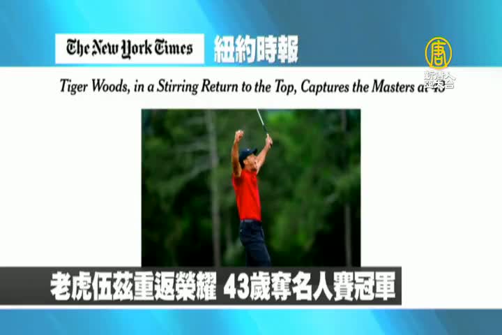 【新唐人亞太台 2019 年 04 月 16 日訊】首先來看到美國紐約時報報導:老虎伍茲重返榮耀,43歲奪名人賽冠軍。