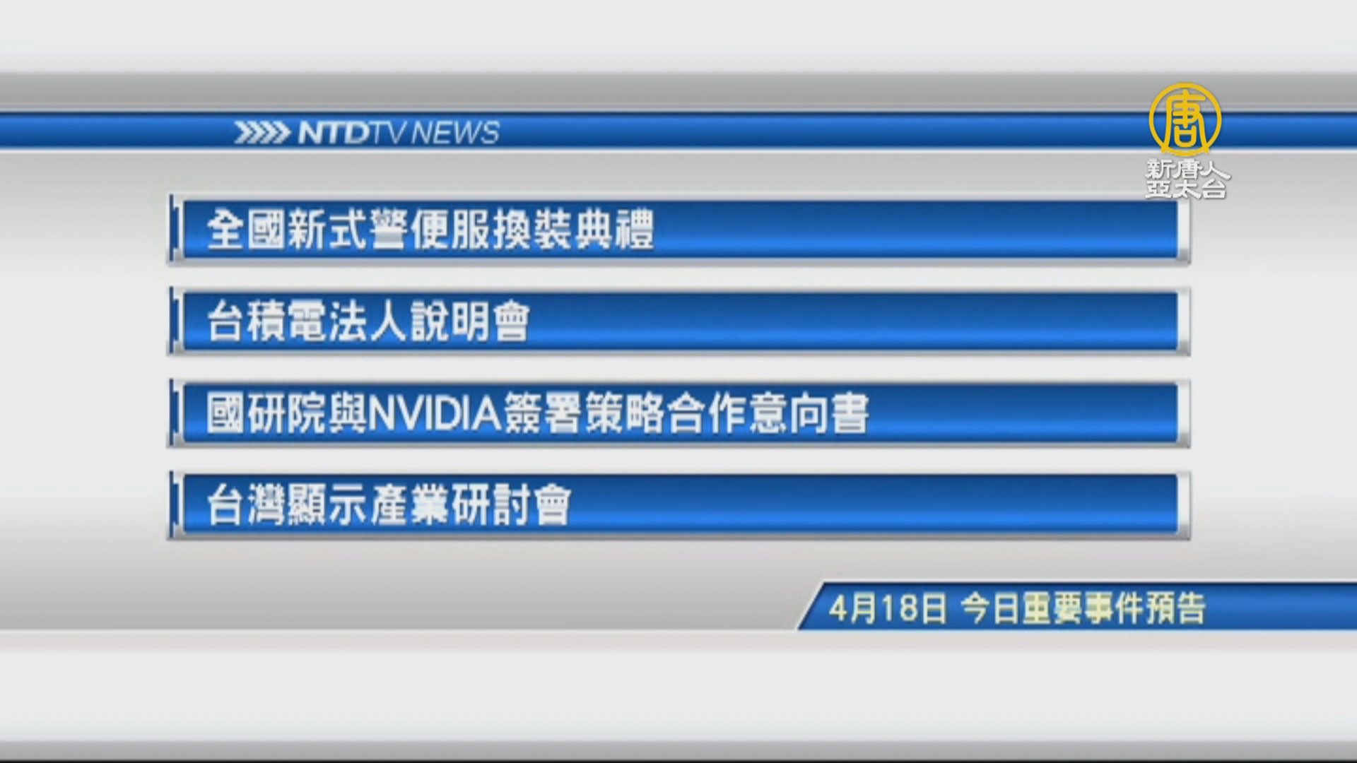 【新唐人亞太台 2019 年 04 月 18 日訊】接著看到,今天,4月18日,星期四 ,有哪些重要活動。首先是,