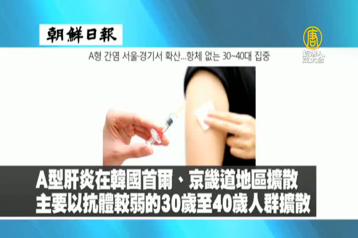 【新唐人亞太台 2019 年 04 月 29 日訊】來看到韓國朝鮮日報報導:A型肝炎在韓國首爾,京畿道地區擴散,主要以抗體較弱的30歲至40歲人群擴散。