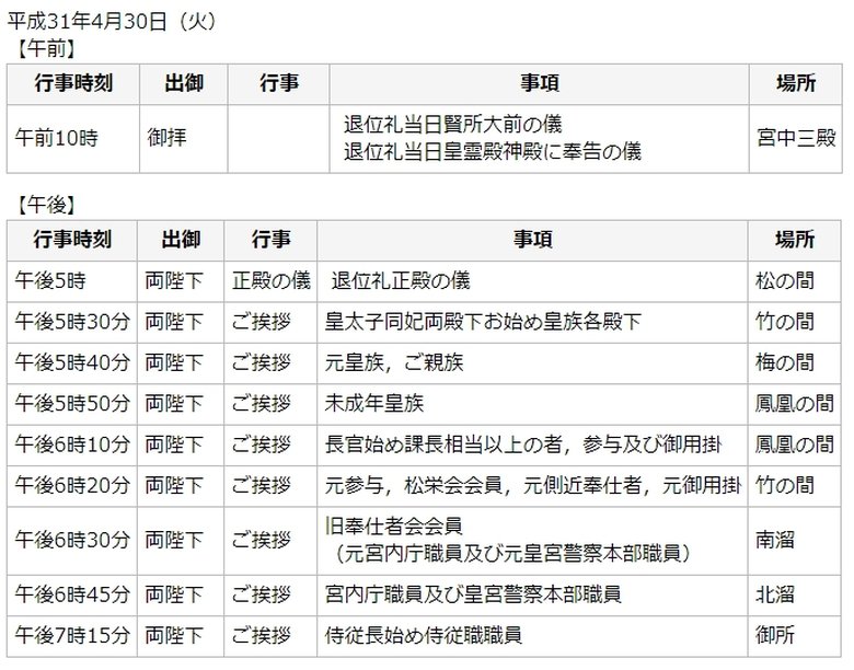 【新唐人亞太台 2019 年 04 月 30 日訊】日本君王明仁今天正式退位,上午要穿上自平安時期君王主持儀式的裝扮「黃櫨染御袍」,於王居正殿「松之間」進行睽違202年的君王退位儀式「退位禮正殿之儀」