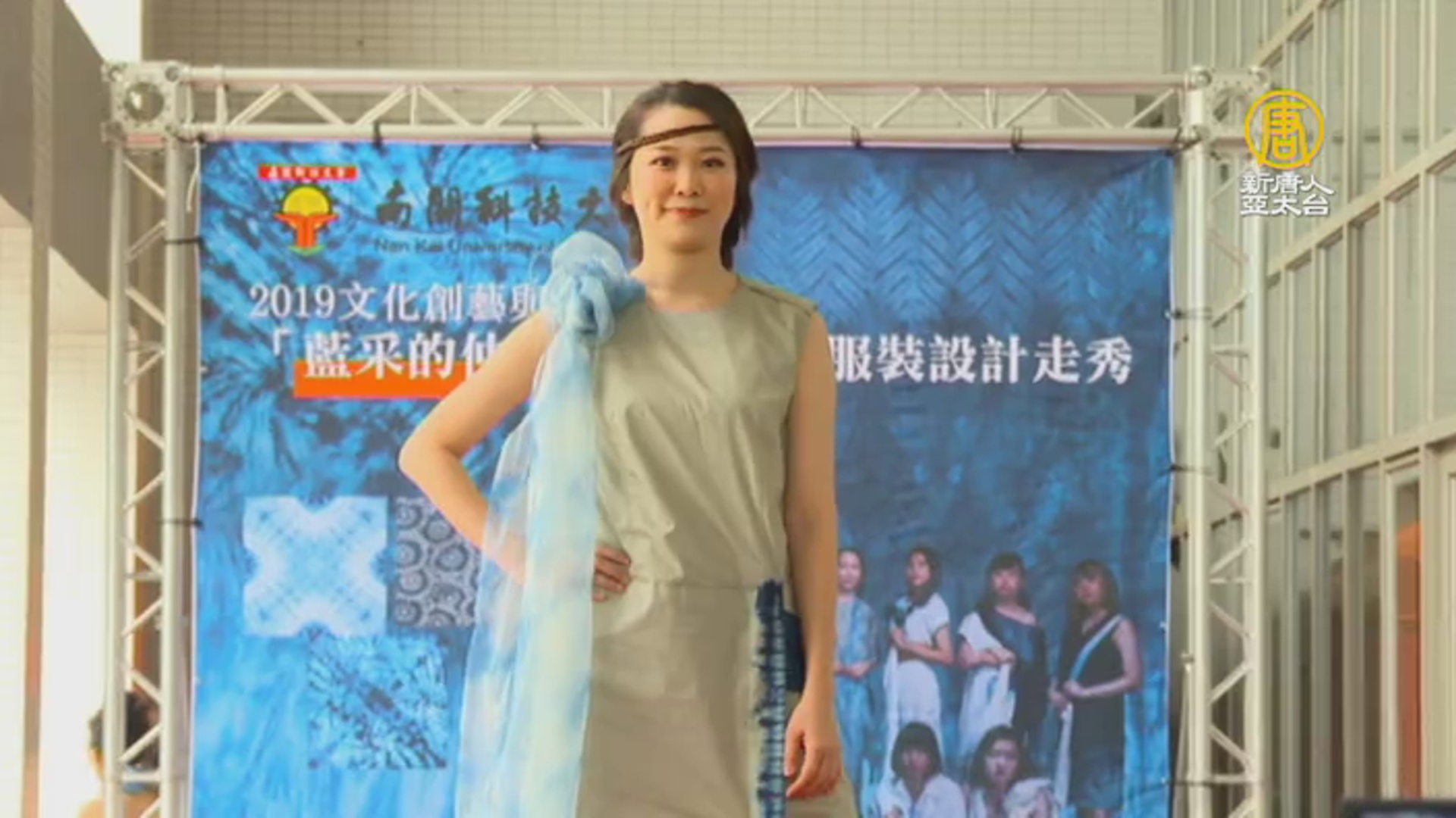 【新唐人亞太台 2019 年 04 月 30 日訊】南開科技大學48周年校慶,(28日)文創系學生特別安排服飾走秀,由模特兒穿著藍染布料做成的服飾,搭配藝術家在衣服上彩繪揮毫,帶給來賓一場傳統與時尚兼具的精采表演。