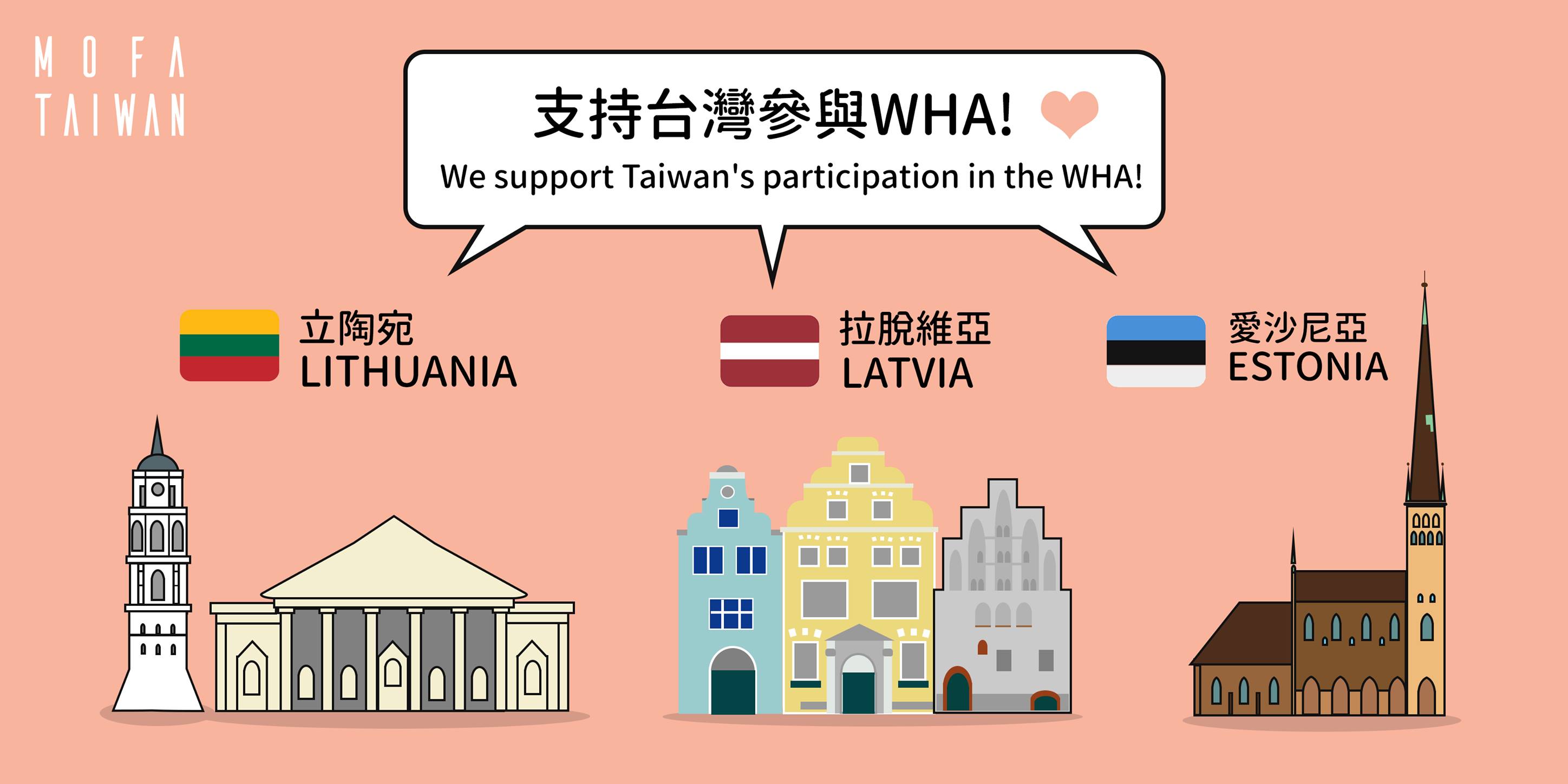 立陶宛國會過半數高達80位國會議員及衛生部長、拉脫維亞6位國會議員、愛沙尼亞國會友臺小組等,近日分別致函「世界衛生組織」(WHO)幹事長譚德賽博士(Tedros Adhanom Ghebreyesus),共同呼籲邀請台灣出席5月舉行的第72屆「世界衛生大會」(WHA)。