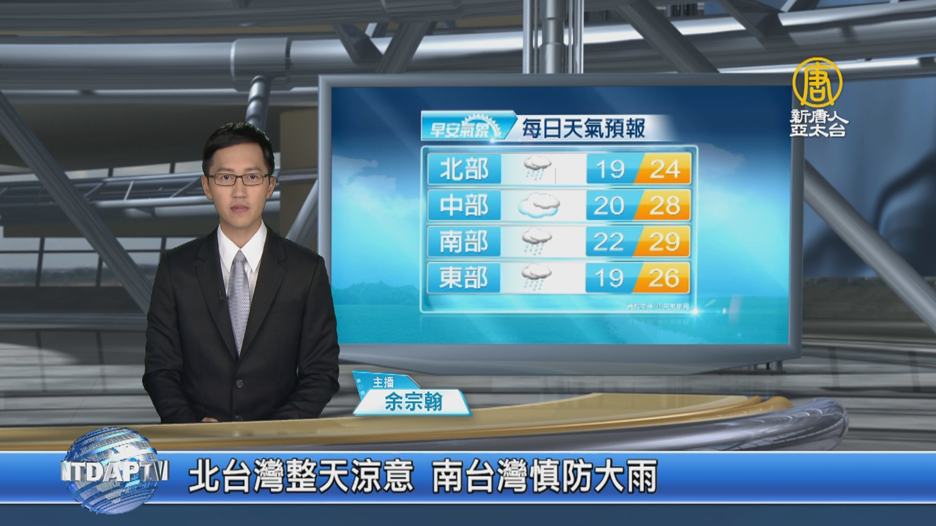 【新唐人亞太台 2019 年 05 月 02 日訊】歡迎您收看5月2日的早安新唐人,我是余宗翰,先來帶您關心今天的天氣情況。今天北台灣天氣較涼,南台灣與中部以北山區,有明顯降雨機率,明天白天至周六,鋒面遠離,東北季風逐漸減弱。帶您一起來看到國際媒體重要訊息。