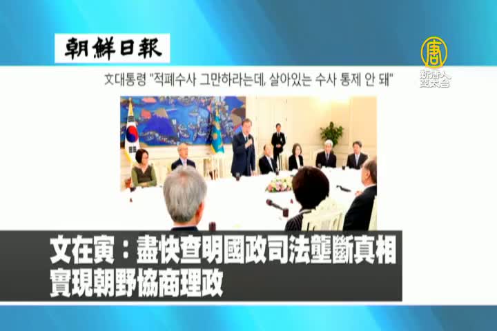 【新唐人亞太台 2019 年 05 月 03 日訊】來看到韓國朝鮮日報報導:南韓總統文在寅表示,要盡快查明 國政司法壟斷的真相,實現朝野協商理政。