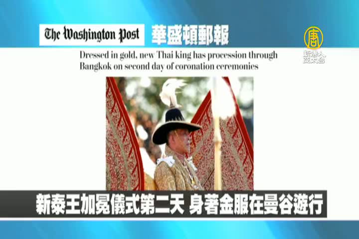 【新唐人亞太台 2019 年 05 月 06 日訊】首先來看到美國華盛頓郵報報導:新泰王瓦吉拉隆功加冕儀式第二天,身著金服在曼谷遊行。