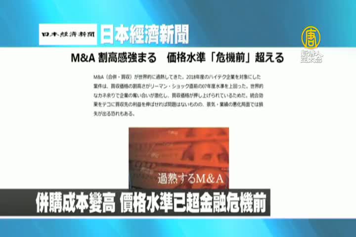 【新唐人亞太台 2019 年 05 月 06 日訊】來看到日本經濟新聞報導,併購成本變高,價格水準已超金融危機前。