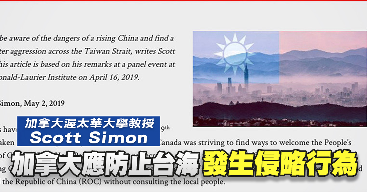 加學者:加拿大應防止台海發生侵略行為