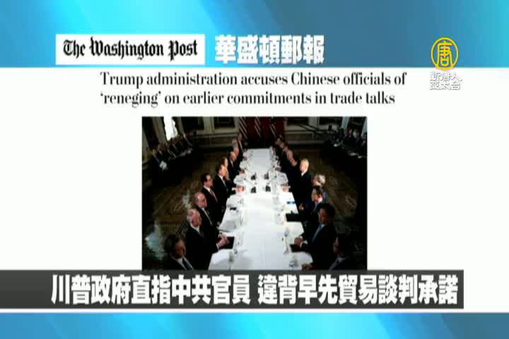 【新唐人亞太台 2019 年 05 月 07 日訊】首先來看到美國華盛頓郵報報導:川普政府直指中共官員,背早先貿易談判承諾。