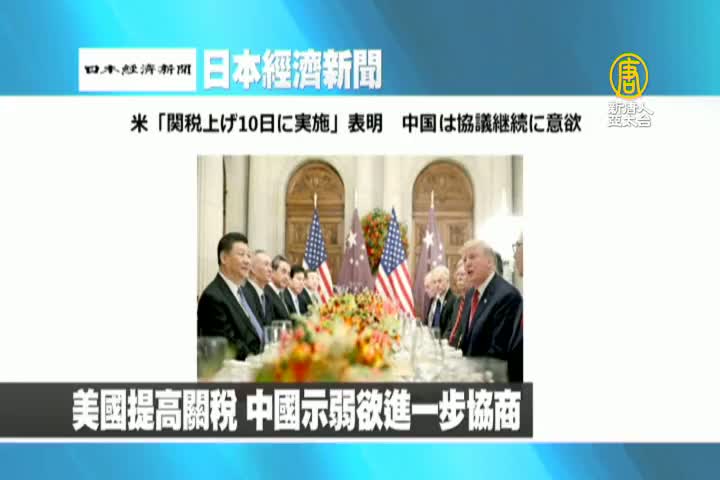 【新唐人亞太台 2019 年 05 月 07 日訊】來看到日本經濟新聞報導:美國提高關稅,中方示弱,欲進一步協商。