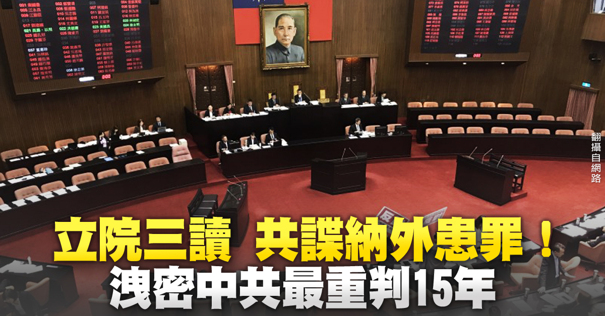 立院三讀 共諜納外患罪!洩密中共最重判15年