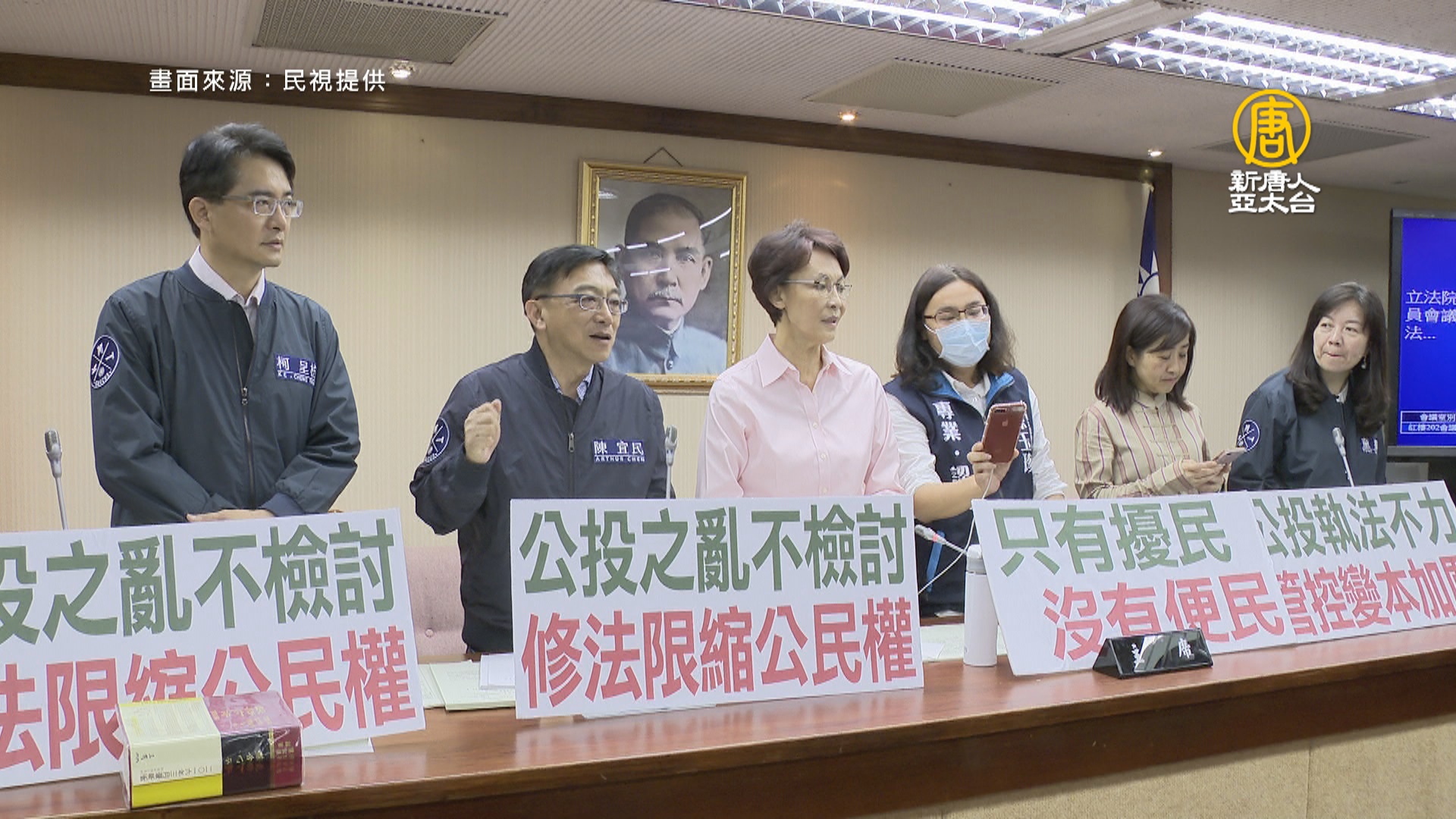 戰場從主席台,延伸到發言台;國民黨不滿行政院和中選會,連公聽會都沒開,就要通過公投法, 861字的修正報告更一字未改。