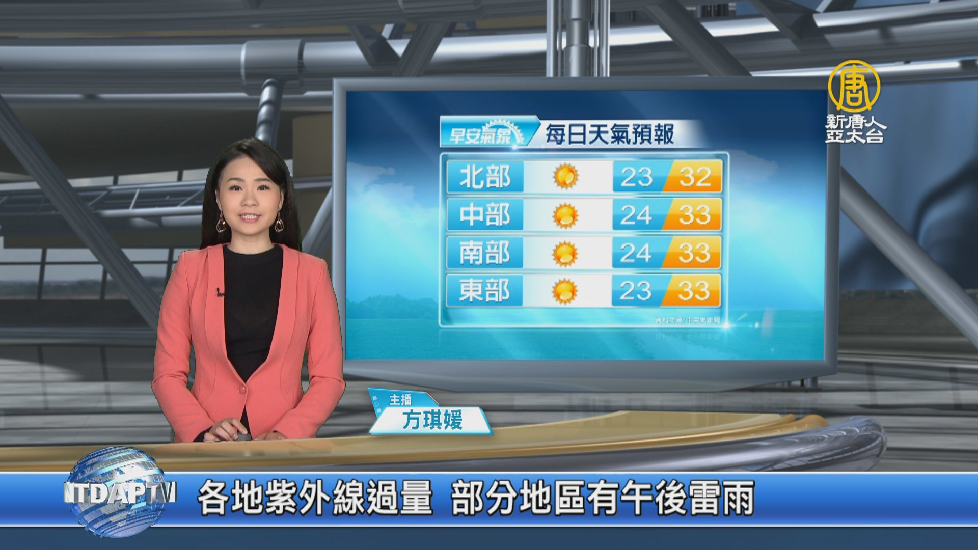 【新唐人亞太台 2019 年 05 月 14 日訊】歡迎您收看5月14日的早安新唐人,我是方琪媛,先來帶您關心今天的天氣情況,和昨天一樣,今天各地多雲到晴,高溫普遍在30到33度,高雄近山區平地有機會出現36度以上高溫,提醒您注意防曬,補充水分。帶您看到國際重要訊息。