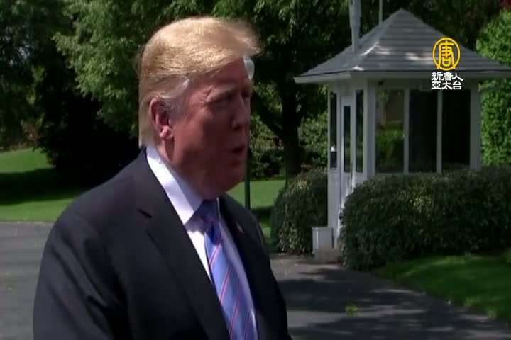 川普總統週二在白宮草坪前,回應記者提問。對於美中談判前景,他持樂觀態度。
