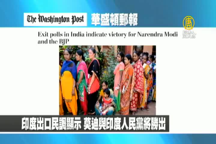 【新唐人亞太台 2019 年 05 月 20 日訊】首先來看到美國華盛頓郵報報導:印度出口民調顯示,印度總理莫迪與所屬的印度人民黨將勝出。