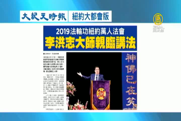 【新唐人亞太台 2019 年 05 月 20 日訊】接著看到大紀元時報紐約大都會版報導:2019法輪功萬人法會,李洪志大師親臨講法。