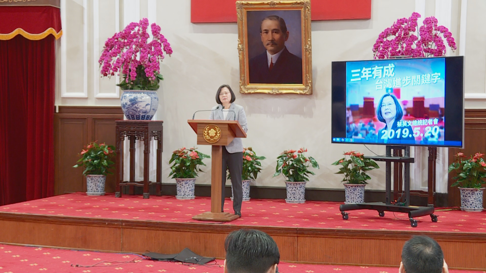 【新唐人亞太台 2019 年 05 月 20 日訊】中華民國總統蔡英文,今天(20日)在總統府發表執政三周年報告,宣布美中貿易大戰,MIT,重新成為熱門關鍵字,她宣布,下任期辦「台灣博覽會」,演講全文如下。